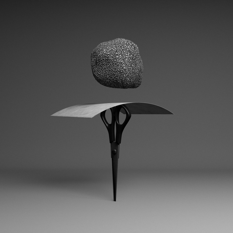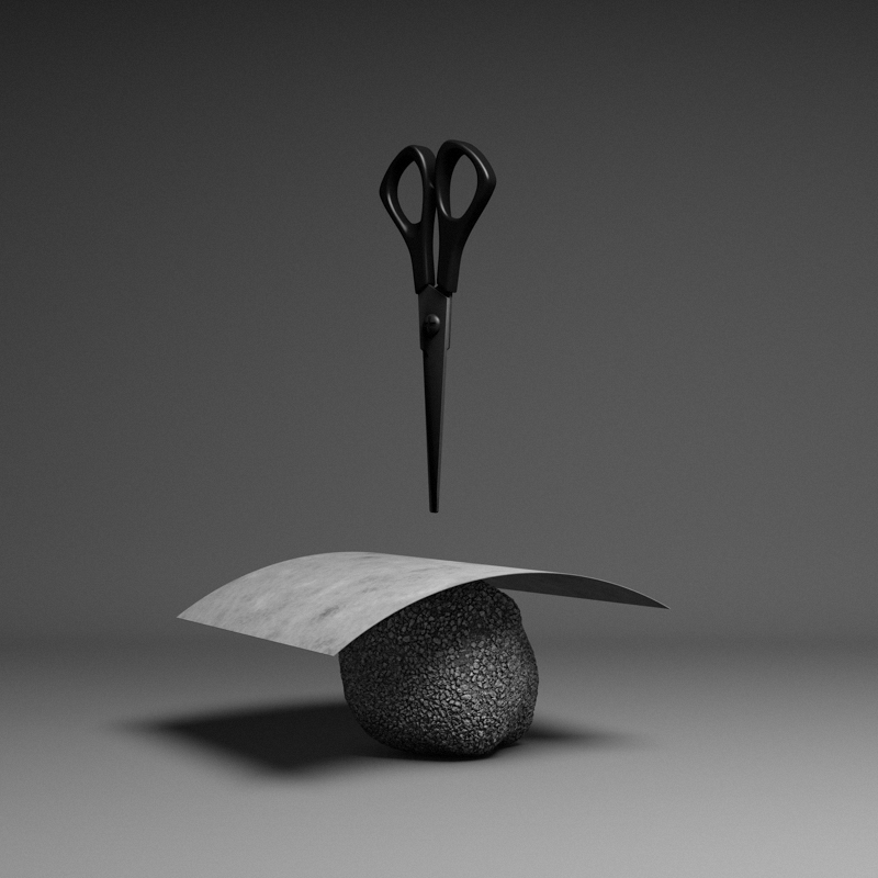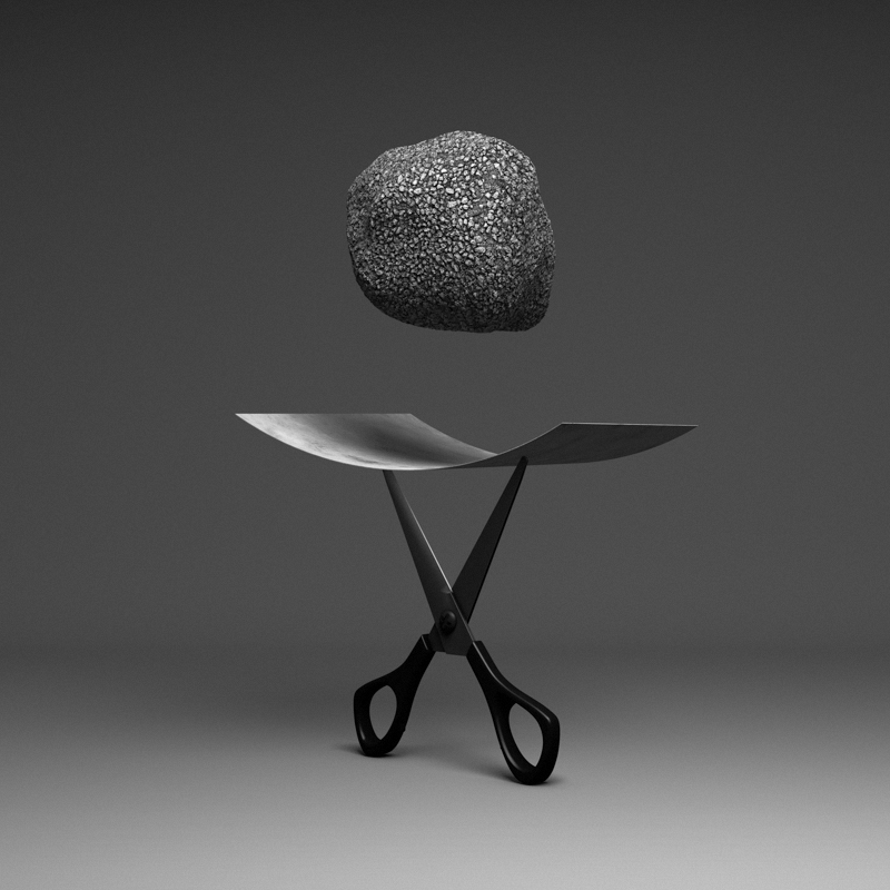 JAN-KEN-PON’s series is inspired by the universal children’s game “Rock, Paper, Scissors” where outcomes are determined entirely by chance, luck or fate. These “PhotoSculptures” approach the game from a different perspective, freezing the rock, paper and scissors in time, and giving viewers the choice to either ignore or follow the rules. They are invited to participate in the story and decide the fate of the rock, paper and scissors. For these brief instants, fate is in our hands. Or maybe not.