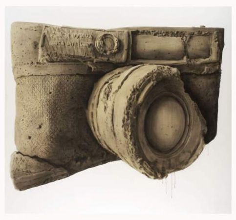 Andrei Roiter’s «non-national» art revolves around the traveler’s notes, the observer’s optics, and the practice of collecting useless «souvenirs». It is the art that stems from the 1980s, the times when there were just a few people involved in contemporary art in Russia. In those years Roiter had first formulated a question he is still asking himself and the spectator these days: «What does it mean to be Andrei Roiter?». His painting My Russian Accent (2003) packs up the artist’s stock of words into an old canvas knapsack. Roiter picks up the knapsack and goes traveling around the world. Ever since, Roiter’s paintings have often contained texts, mostly short sayings in English. In terms of style, the artist’s artifacts retain that ineradicable «accent» expressed through the strong allure of a manmade object, far from the cold, impersonal and manufactured objects of the West.. By means of his work My Russian Eyes (2010) Roiter sort of acknowledges that once a person develops his vision, it remains with him across borders. Having armed himself with typical equipment of a tourist i.e. a camera that looks like a thing of gigantic proportions on Roiter’s canvases, the artist who had once tried wearing the mask of an «eternal traveler» — the mask is likely to stay on forever — is destined for the never-ending discovery of «new lands.»