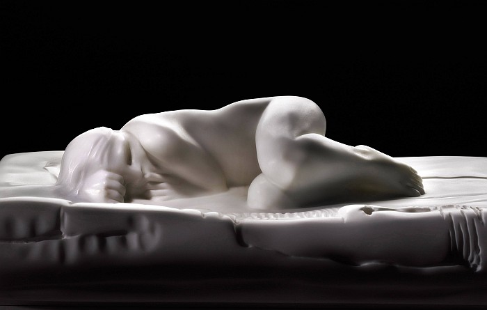 Among the works on display are exceptionally large bronzes such as “Veio” (2010), three massive granites (“Persona”, “Granito rosso” and “Ulysses”), a shocking impact sculpture on the tragic and more-than-ever actual theme of decapitation such as “C’era una volta” (2005), a never displayed cycle of huge double-faced works which create a dialogue between sculpture and painting (“La bruma del mattino”, “ L’uomo”, “L’uomo che corre”, all in 2014), three white marble works on the relationship of Woman with Sea (2014), the magnificent “Ragazza con capelli biondi” (2014), in painted linden wood and the bronze “2011”, full of extraordinary realism depicting one of the many “indignados” who set in motion that sweeping international protest movement from Spain.