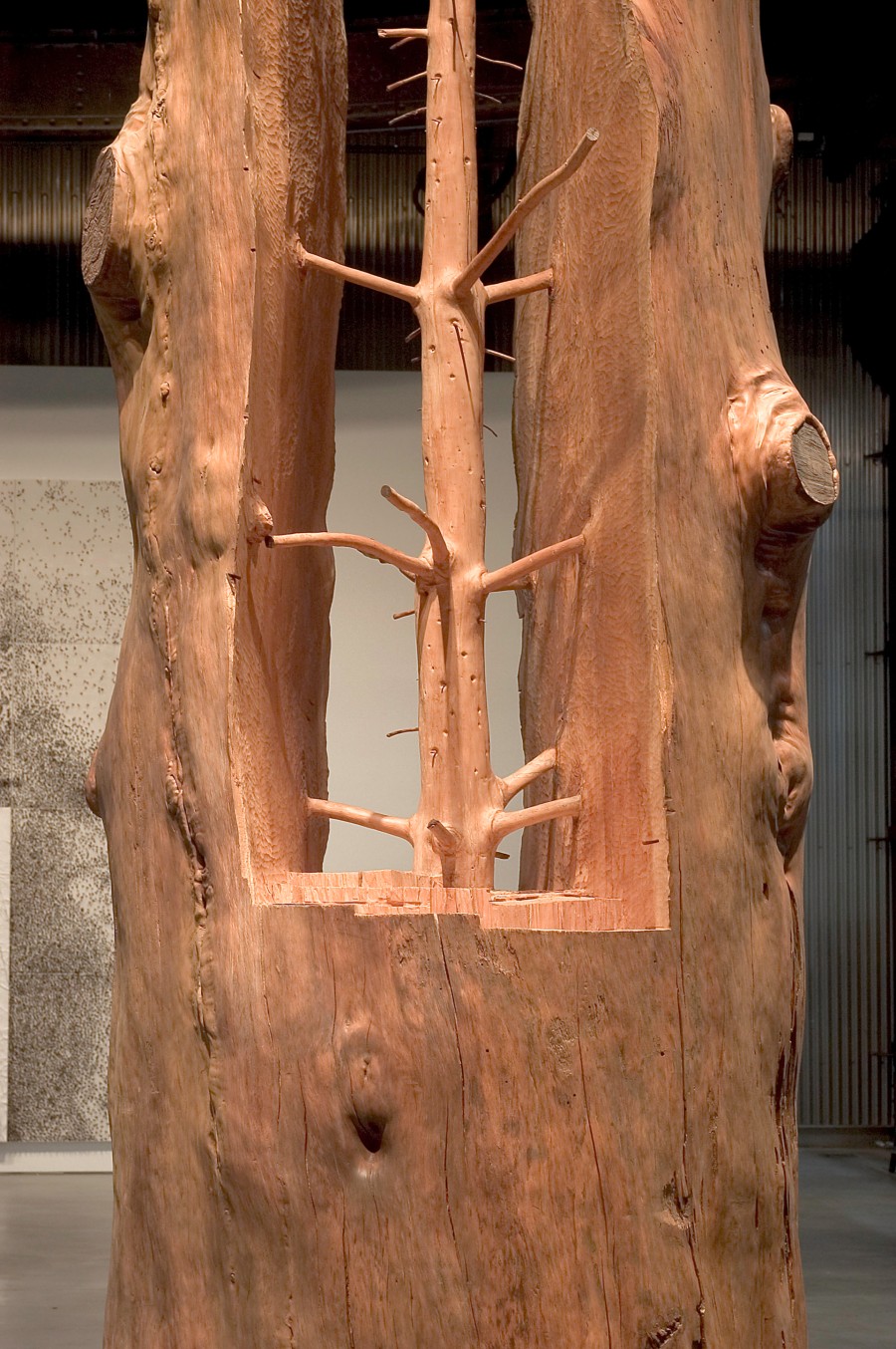 A bronze tree carrying a solid block of granite between its branches, a tree trunk with water gushing out of it, and images drawn from the artist’s own forehead are among the enigmatic works of Giuseppe Penone.