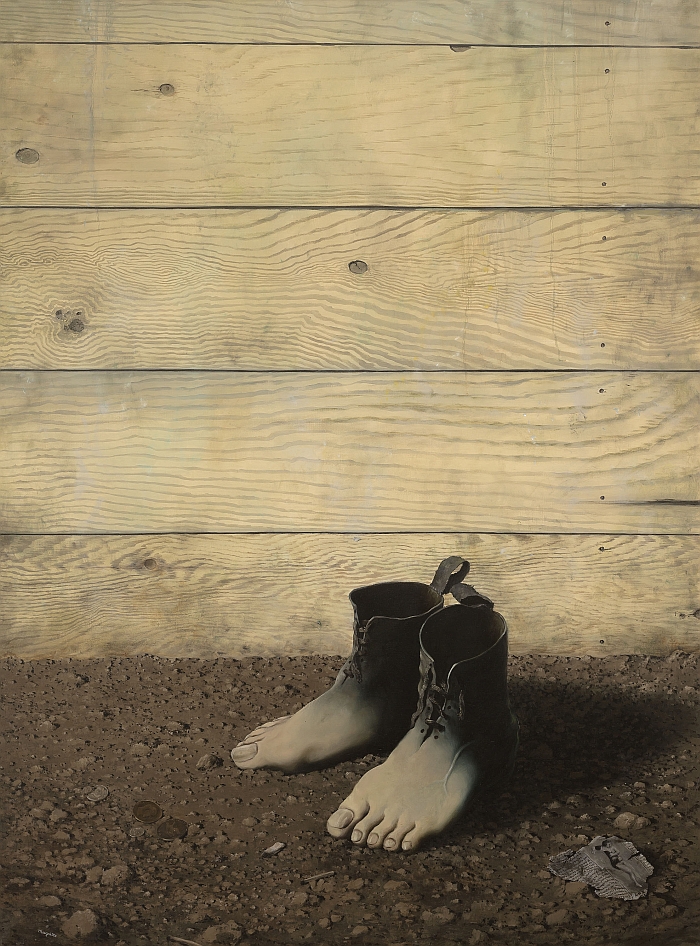 In 1937 Magritte accepted a commission from James for three large paintings in the latter’s London home, including the Art Institute’s own On the Threshold of Liberty. This represented an artistic and professional turning point for the artist. It was his first major commission and the dimensions of the pieces were larger than any he had painted before. This work quite literally gave him an opportunity to present his work on a grand scale.