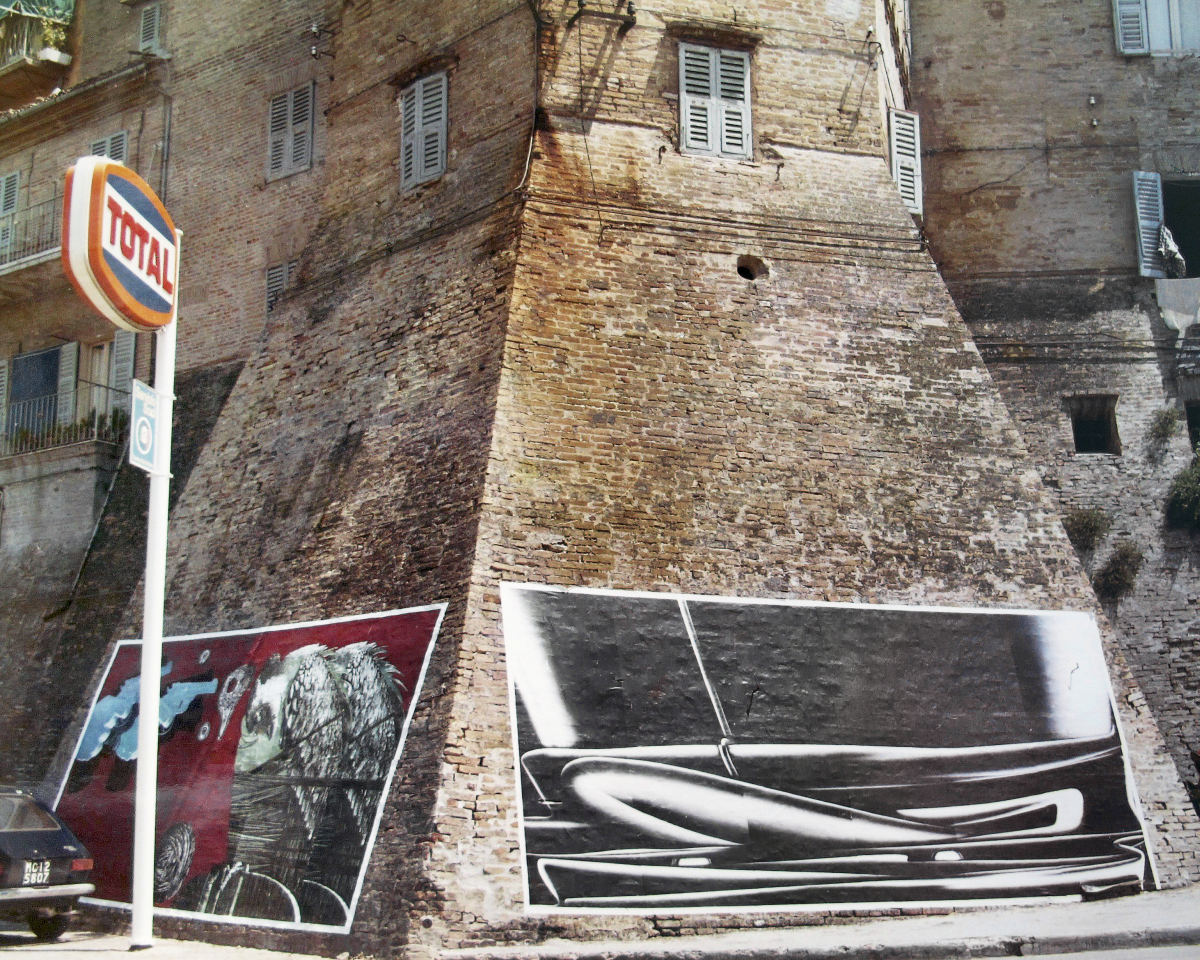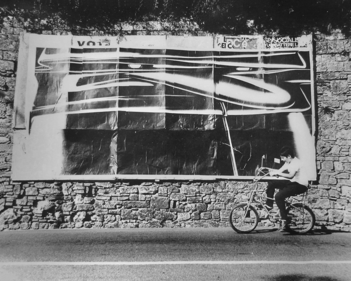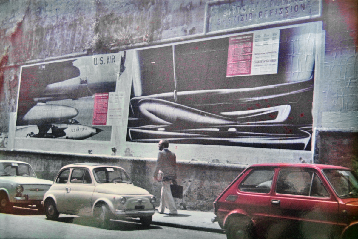 In 1973 the art historian and curator Enrico Crispolti commissioned eight artists — Umberto Mariani, Fernando De Filippi, Ugo Nespolo, Fabrizio Plessi, Sergio Sarri, Francesco Somaini, Valeriano Trubbiani and Emilio Vedova — to create posters that he installed in pre-existing advertising spaces in different cities across the Italian peninsula. The title for this disseminated and decentralized exhibition was Dissuasione Manifesta: Operazione 24 fogli (Manifest Dissuasion: Operation 24 pages), and, between 1973 and 1979, Crispolti installed it in Volterra, Macerata, Fano, Milan, Capo d’Orlando, Como, and Salerno. The goal was to infiltrate the preexisting system of commercial advertisement with art. The posters acted as agents in a covert curatorial operation, disrupting mechanisms of communication and objects of consumption. They also questioned the status of the art object, here displaced to a non-traditional art setting.