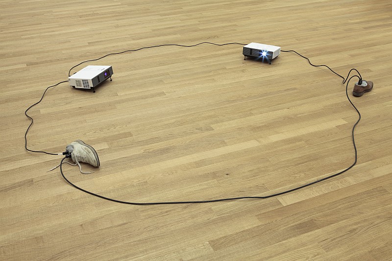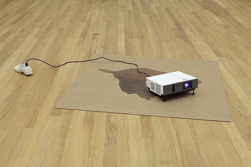 The exhibition will feature the first U.S. presentation of Chan’s series Nonprojections (2013– ), a body of work comprised of video projectors and jury-rigged, power-conducting shoes that are connected by specially designed cords. Although the projectors’ lenses flicker and strobe as if outputting videos, there is no corresponding surface on which imagery might appear. Holding their contents within, these would-be projections remain illegible phantoms, replacing a passive experience of moving images with one that Chan characterizes as “inner-directed, like the ghostly visual impressions that one conjures up in one’s mind when reading a good (or bad) book.” The exhibition will also include a work that signals a new direction in Chan’s practice. Described by the artist as a sculptural animation, this composition of white nylon fabric set in motion by industrial fans evokes an otherworldly apparition.