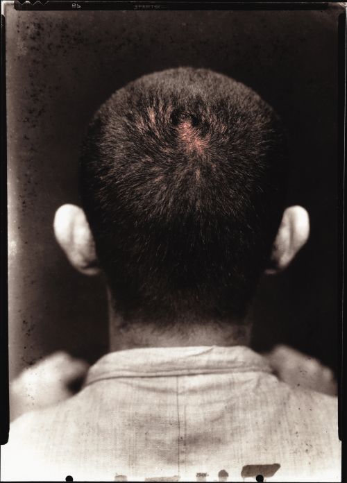 The use of appropriation to counter the loss of memory is a driving force in the work of Rosângela Rennó. It is a form of fighting collective repression and a future that is void of a past; appropriation is a means of combating emptiness, the vacuum in the kickback of the motor of the future. In her own way Rennó seems to operate as a tracker. This is true of her early work Imemorial, in which she updates portraits of workers who died during the construction of the future-oriented city of Brasilia. In this piece she develops her first visual work of mourning, which counteracts the intended or unintended obliviation of the victims of a major national project, the burying of the past in the service of the future. In the works Cicatriz (Scar) and Vulgo [Alias] Rennó performs a kind of mental archaeology, in which photographs of former inmates, glass plate images she discovered in the Carandiru jail in São Paulo, are enlarged to an almost painful dimension, so that in looking at the over-sized images we physically sense the coldness of these early formal identity photographs, on the one hand, and the living presence of the individuals (including all their scars, tattoos, imperfections of the skin and stubborn whorls of hair), on the other. The work serves as a visual embodiment of what has been pushed into the subconscious, the belated but significant emergence of the prisoners from anonymity.