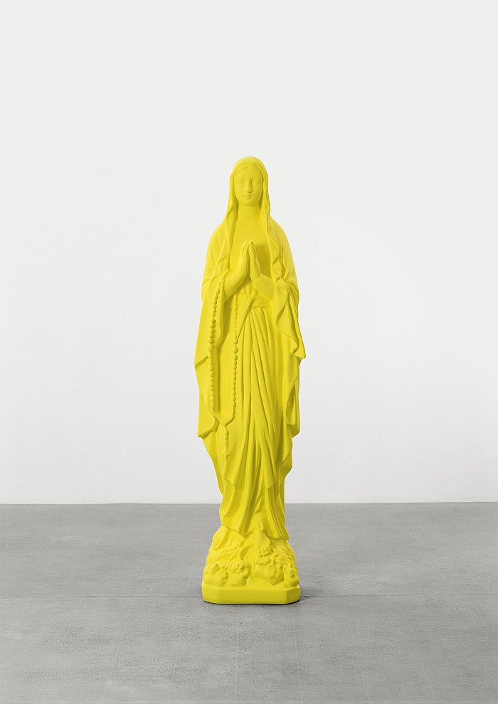 A focused examination of thirteen large-scale masterworks presented in a series of telling juxtapositions, Sculpture After Sculpture traces the parallel developments of Katharina Fritsch (b. 1956), Jeff Koons (b. 1955), and Charles Ray (b. 1953). Beginning with iconic works from the late ’80s and early ’90s, which highlight the artists’ shared relationship to the commodity and the readymade, the exhibition follows the development of their practices up to the present. Highlights of the exhibition include Jeff Koons’s celebrated Michael Jackson and Bubbles, 1988, a porcelain and gilt confection depicting the late Pop legend Michael Jackson with his pet chimpanzee for which the sculpture is named; Charles Ray’s two-ton aluminium Tractor, 2005; and Katharina Fritsch’s acid yellow apparition Madonnenfigur / Madonna, 1987