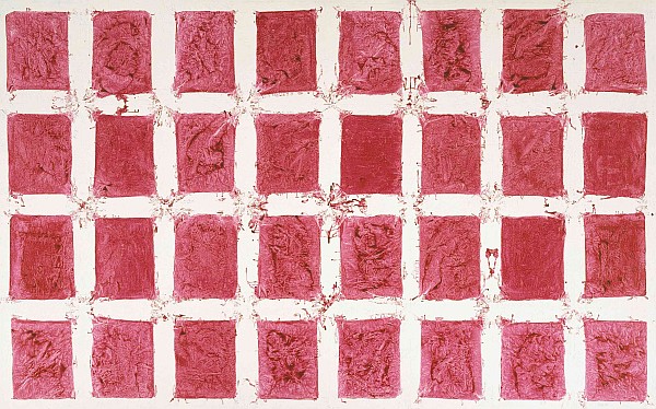 The exhibition is divided into two sections linked by a selection of small paintings that helps understanding the artist’s itinerary in the 1960s and 1970s. In the first part, surrounding the monumental achievements of Peinture (Écriture rose) and À Galla Placidia (1958-1959), are paintings created by small strokes or calligraphy, as well as works realized with the pliage technique, such as the first Mariales which constitute Hantaï’s answer to the work of Matisse and Pollock.