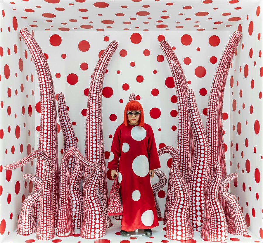 “To share her experiences, Kusama creates works of art that invite visitors to lose themselves in the infinite nets, mirror rooms and thousands of polka dots with which she covers the world. It is as if her installations suspend time and space – an infinity that embraces rather than overwhelms us.” says Jo Widoff.