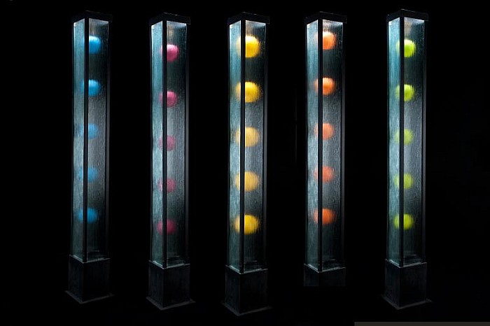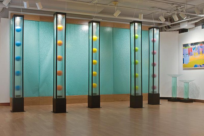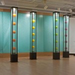 Centered about a prominent third floor smokestack, a remnant of the building’s original designation as a munitions factory, the dynamic Levitation Towers stand over 7 feet tall, each containing brightly-colored orbs suspended within glass panels. “They remind me of flags waving outside of the United Nations building,” Sigethy says, and believes they speak to the international demographic of the Factory. With the largest collection of working artist studios in the United States, including 165 visual artists in 82 studios, 6 galleries, and 2 workshops, the Torpedo Factory boasts a large international population of artists. The Towers speak to the eco-artist’s interest in kinetic energies. “The movement of the balls within each tower is very much like fireflies in a jar, so I think of them as summer sculptures. They are also very appropriate works for the anniversary celebration since the Torpedo Factory is always buzzing with activity. There are five towers which symbolize community — we are a community of artists and part of the Alexandria community as well. The energy from our guests, when they visit our studios or attend our events, is an intrinsic part of the work that we create, and we would like to think that the feeling is mutual with our contribution to the unique personality of historic Alexandria.” Sigethy is an active member of the Torpedo Factory Artists Association. Juried in to the Center (http://www.torpedofactory.org/) in 2007, she has maintained a solo studio since 2009. To celebrate her own fifth anniversary in the space, the artist’s studio will undergo major renovations and a grand re-opening event slated for early July. In seven years’ time, she has forged meaningful connections with fellow Factory artists and members of the community through community-building initiatives — from guiding Factory tours and being involved with Factory-wide events to opening her studio for her popular personalized art classes. The Torpedo Factory’s 40th anniversary officially kicked off in early June with a mural unveiling from another Factory artist, Rachel Kerwin, and an opening reception in the Target Gallery. For the next month, the Alexandria Community Arts Library pays homage to the Torpedo Factory’s distinguished history with an exhibition including a cabinet of curiosities, an art lending library, and a reading area. Commemorative festivities and exhibitions are planned for the remainder of the year. Sigethy is thrilled to be a contributor to the mission of the Torpedo Factory, helping to forge bonds between artists and the greater community. The public installation of her Levitation Towers speaks to these daily interactions taking place at the Center. |