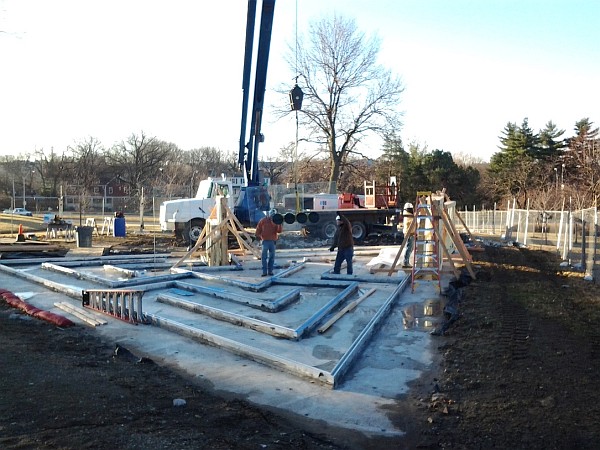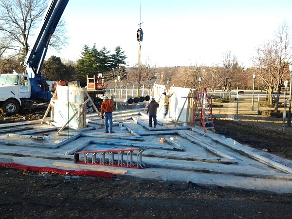 While the labyrinth is a deceptively simple structure, its creation required a very large team and much ingenuity to see its realization. Construction began on the project last fall, under the leadership of Steve Waterman, Nelson-Atkins Director, Presentation and in collaboration with Erich Blohm Design, engineer for Robert Morris. A crew of more than 80 worked on the physical construction of the sculpture, with an additional crew of local and national companies involved in the planning and development.